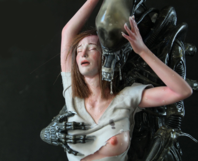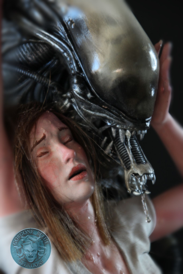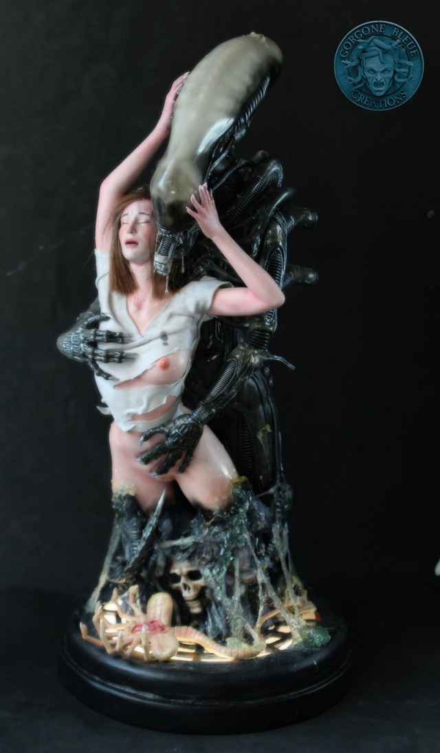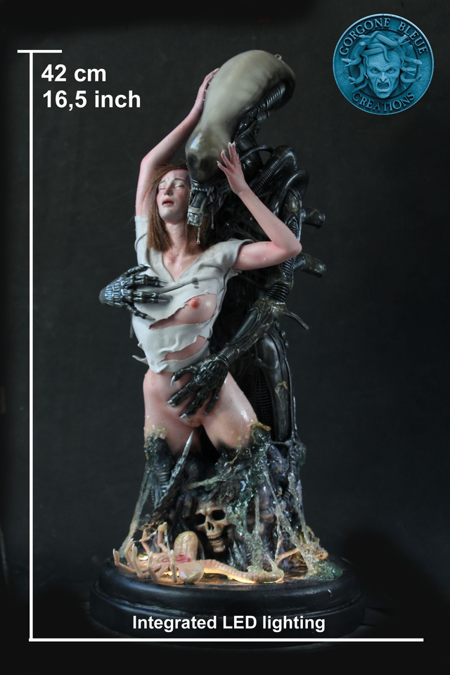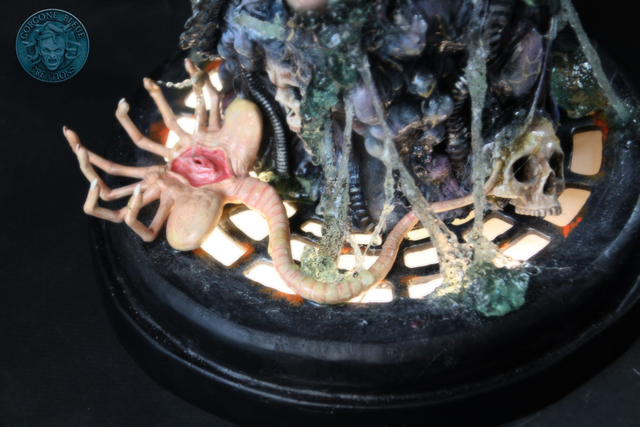 Diorama répresentant Zuul et Gozer. Les yeux du chien de l'Enfer sont lumineux. Hauteur 35 cm sur une base de 50 x 50 cm.
